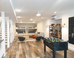 This beach house needed an "outdoor living room" to allow the owners to enjoy their enlarged and improved new landscape. The classically inspired "pavilion" compliments the existing Neocolonial house and has a bright, airy and relaxed atmosphere inside. Its bell-cast roof gives it an elegant silhouette and allows the new structure to tuck onto the original house without effecting the existing fenestration. DCA also designed a new interior playroom, lounge, and an in-home gym.